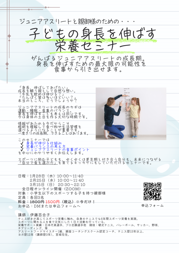 我が子の身長を伸ばしたい・・・と願う親御様向けの食のセミナーです。